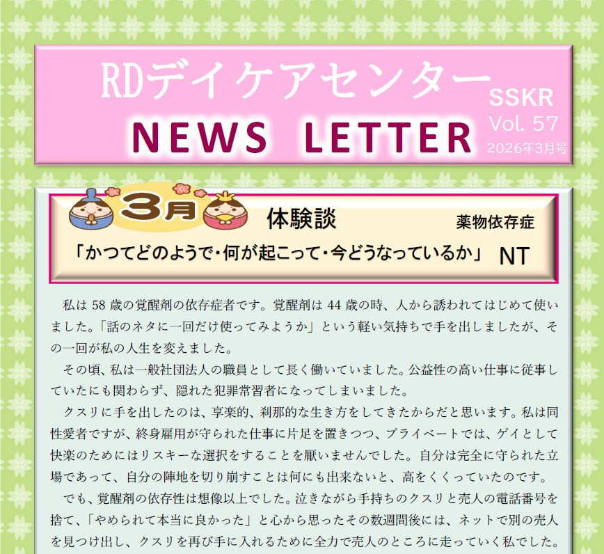 の話を聞いて、「私も同じだ」と思い、12 ステップを体系的に教えてくれるRD デイケアセ